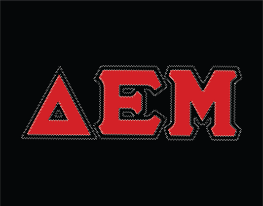 Delta Epsilon Mu crewneck sweatshirt letters // Delta Epsilon Mu zig-zag embroidered crewneck letters
