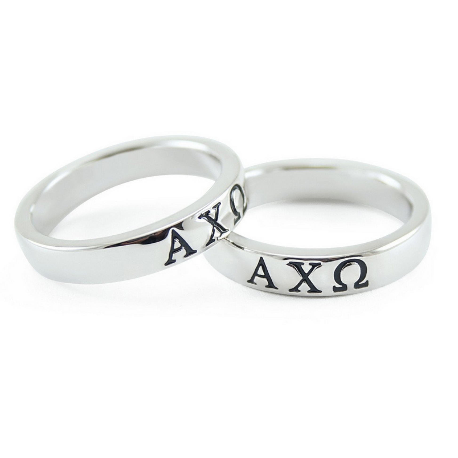 Alpha Chi Omega women sterling silver ring with Greek letters finished in black enamel. Coated with rhodium for a smooth and lasting shine.