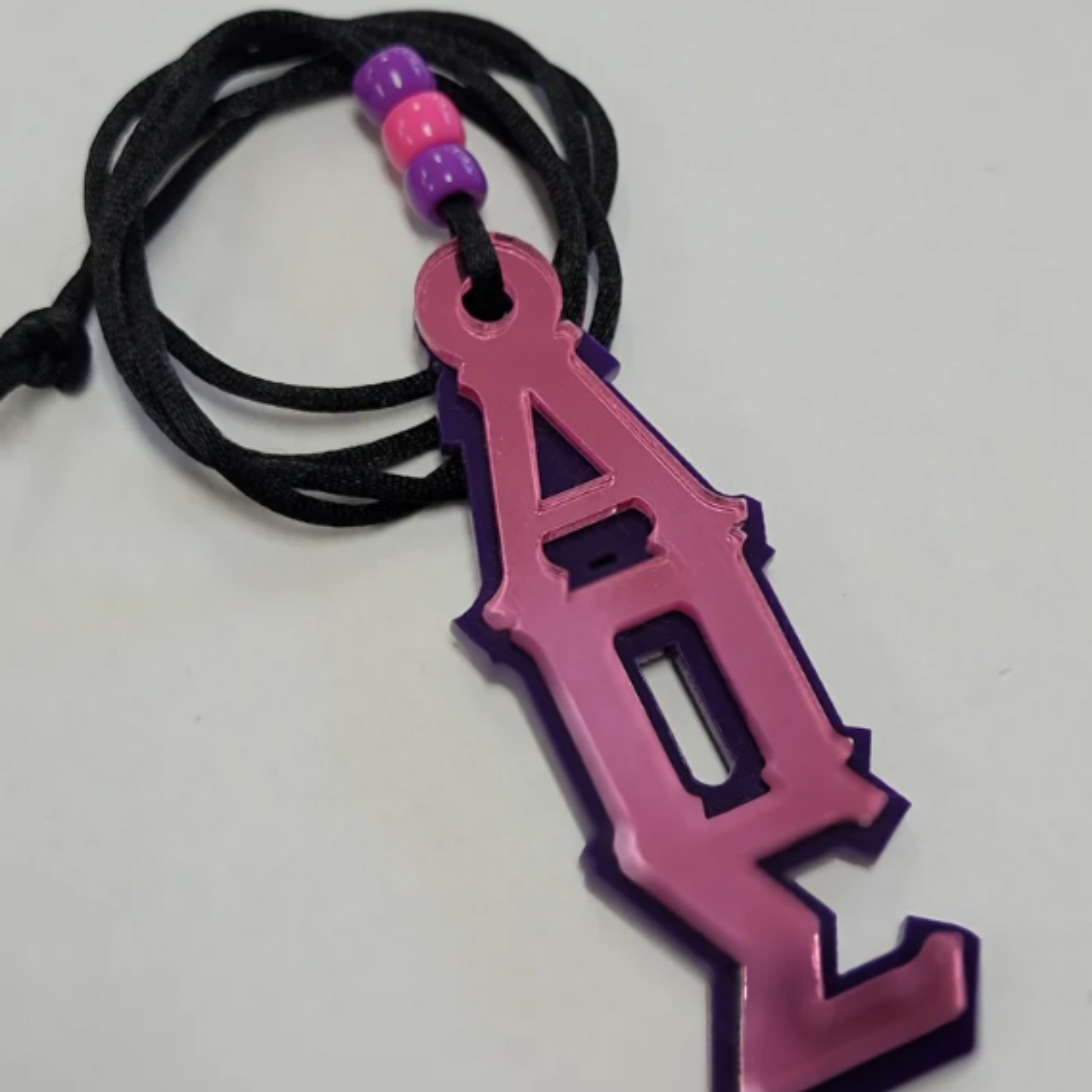 Alpha Pi Sigma Fraternity Key Chain. Laser cut Greek letters on double layer hard plastic with Fraternity colors in mind.