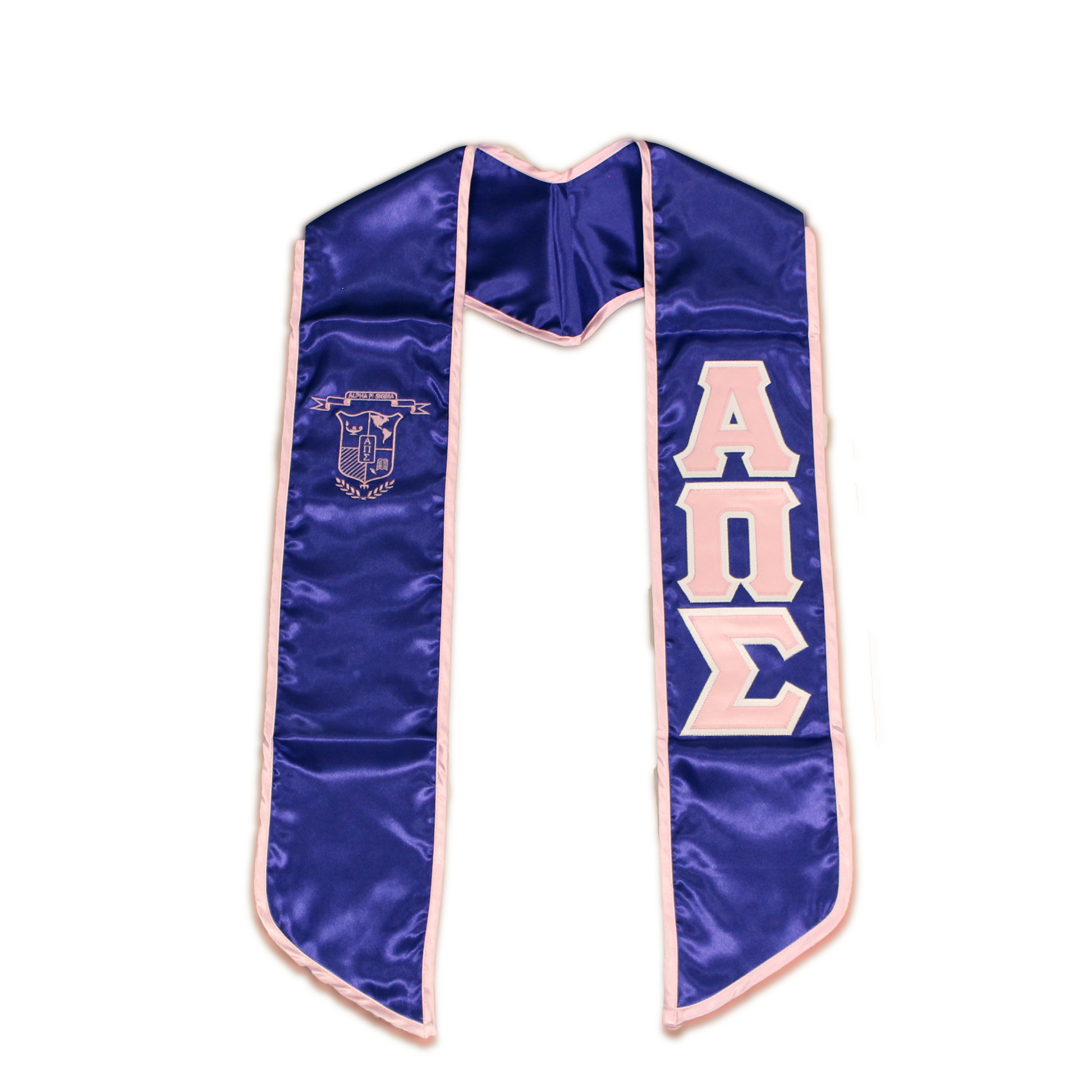Our Stole are made with 100% Silk with our best Zig-Zag embroidery of Pink and White Greek Letters, Finished with Alpha Pi Sigma Seal and School Initials.
