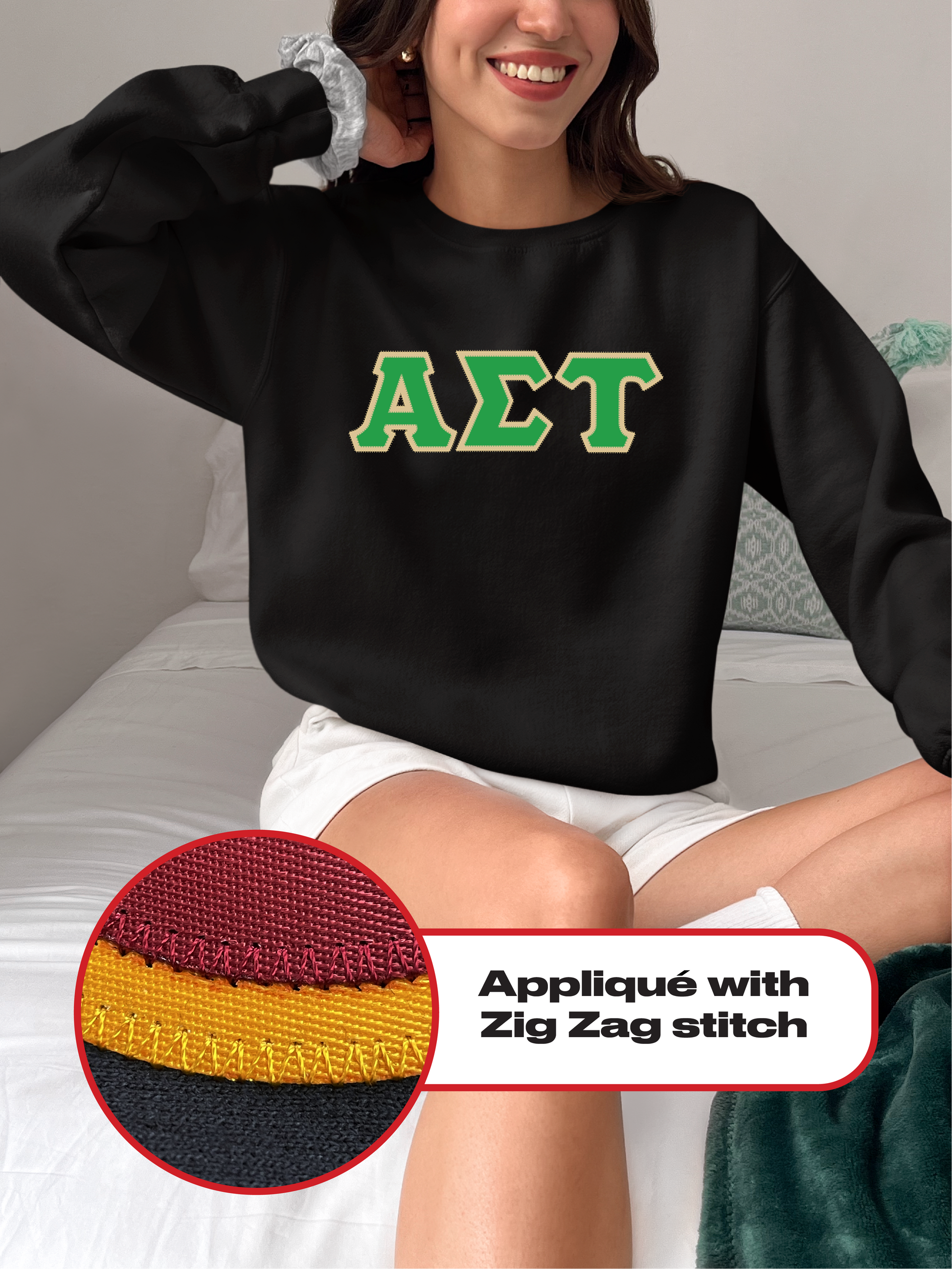 Alpha Sigma Tau crewneck sweatshirt letters // Alpha Sigma Tau zig-zag embroidered crewneck letters