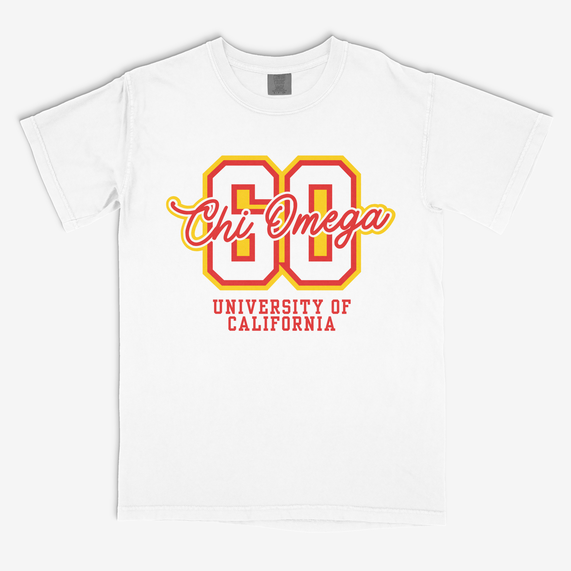 This unisex graphic tee features varsity style text that's customizable. Available on your choice of Comfort Colors® for that soft, vintage-washed feel, or Gildan Heavy Cotton for a classic, structured fit. Perfect for recruitment, bid day, Greek Week, philanthropy events, or casual wear.