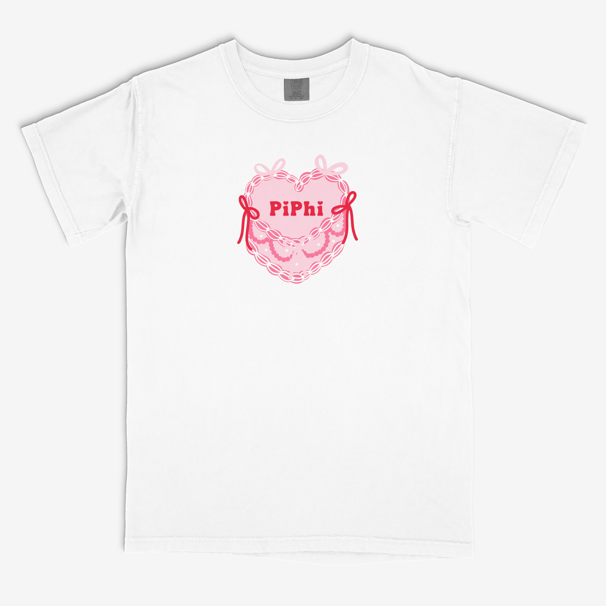 This unisex graphic tee features a pink or blue heart cake with bows and text that's customizable. Available on your choice of Comfort Colors® for that soft, vintage-washed feel, or Gildan Heavy Cotton for a classic, structured fit. Perfect for recruitment, bid day, Greek Week, philanthropy events, or casual wear.