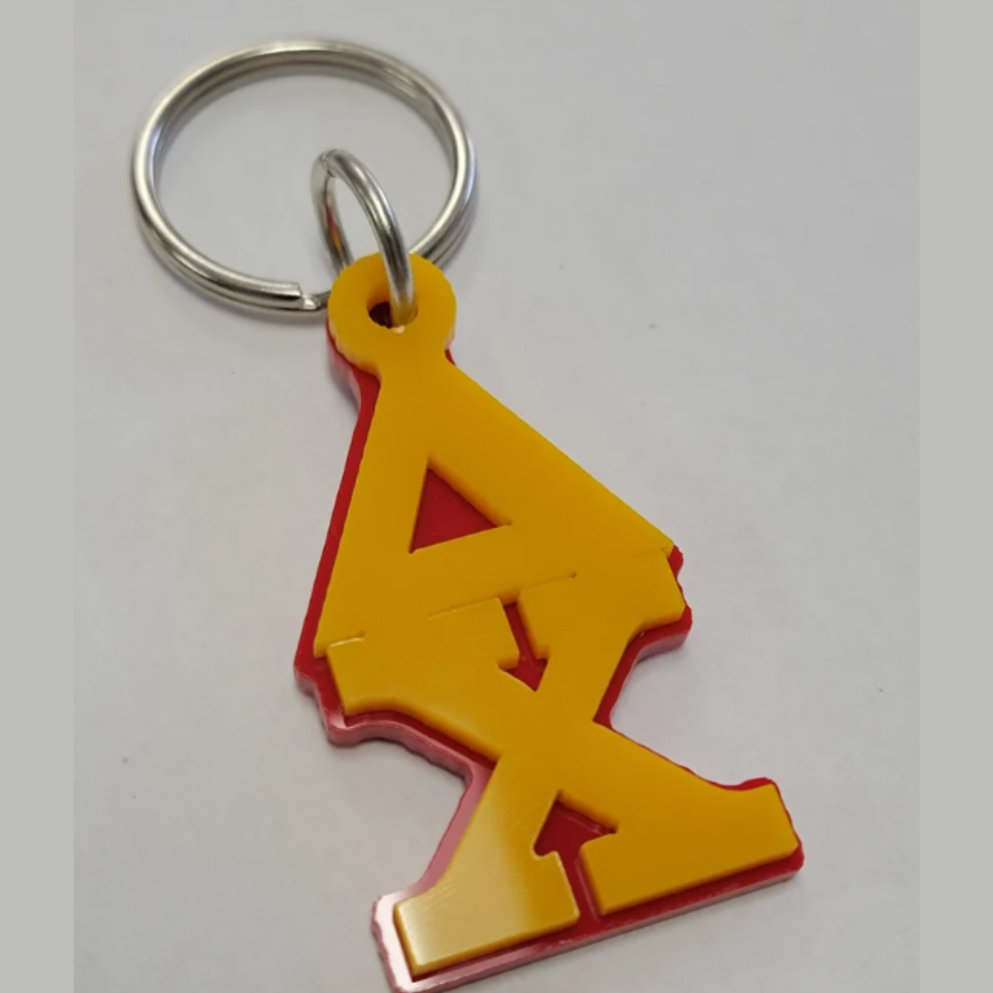 Delta Chi Fraternity Key Chain. Laser cut Greek letters on double layer hard plastic with Fraternity colors in mind.