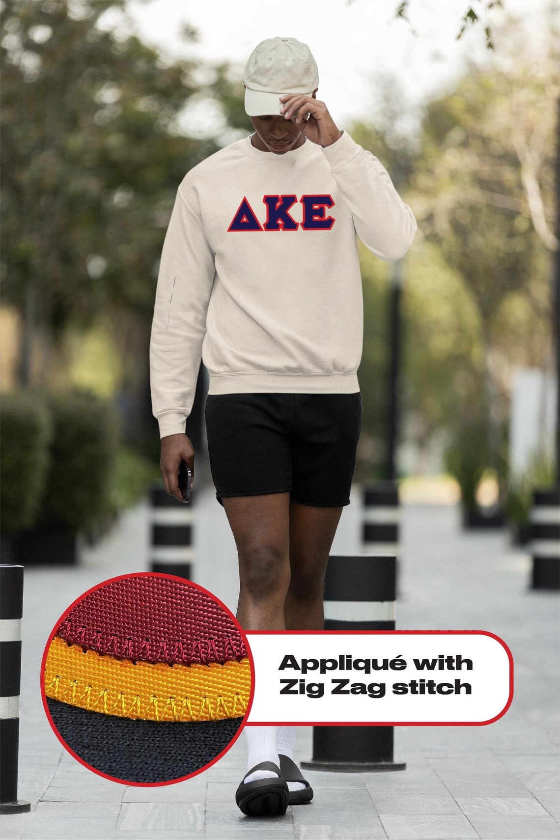 Delta Kappa Epsilon crewneck sweatshirt letters // Delta Kappa Epsilon zig-zag embroidered crewneck letters