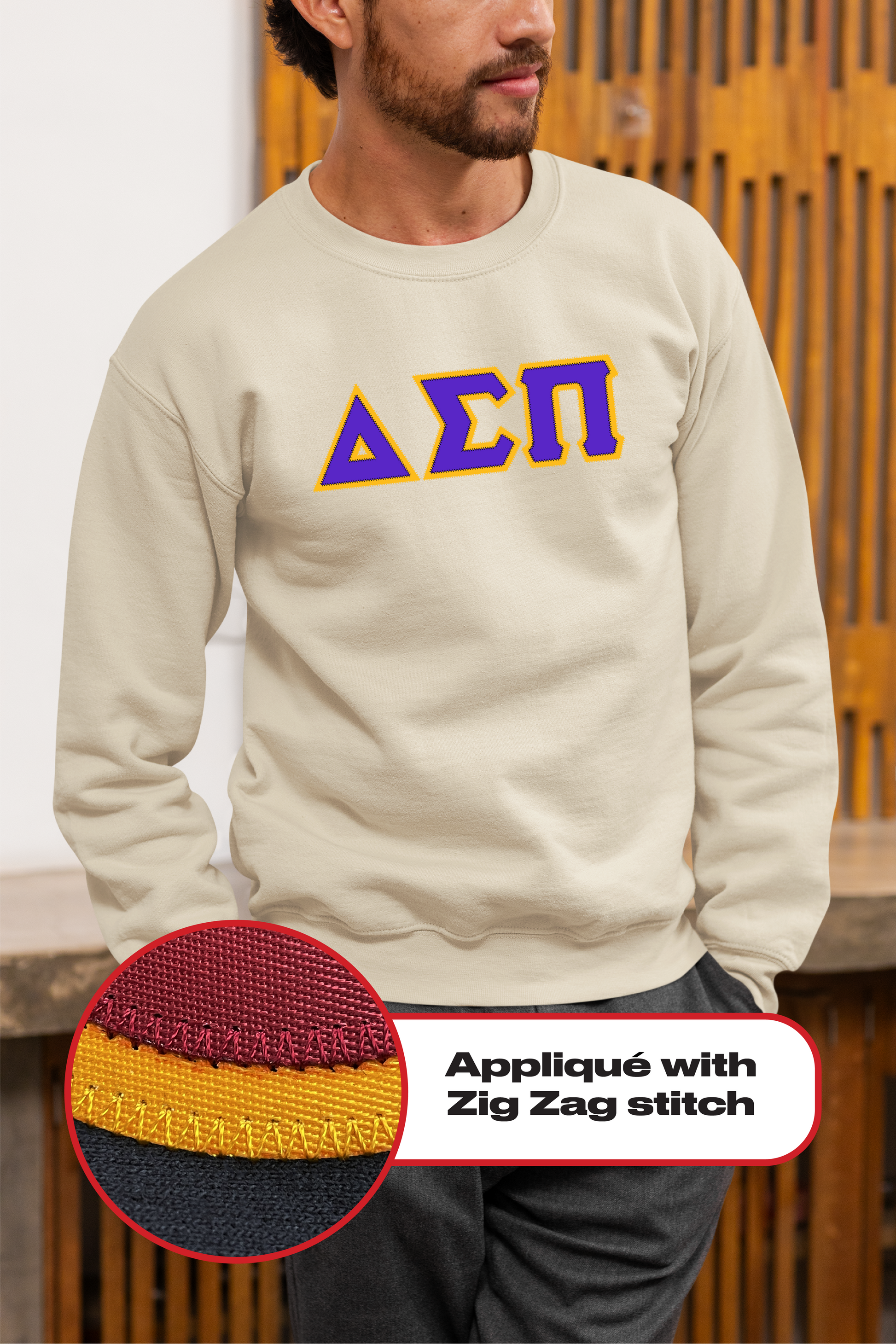 Delta Sigma Pi crewneck sweatshirt letters // Delta Sigma Pi zig-zag embroidered crewneck letters