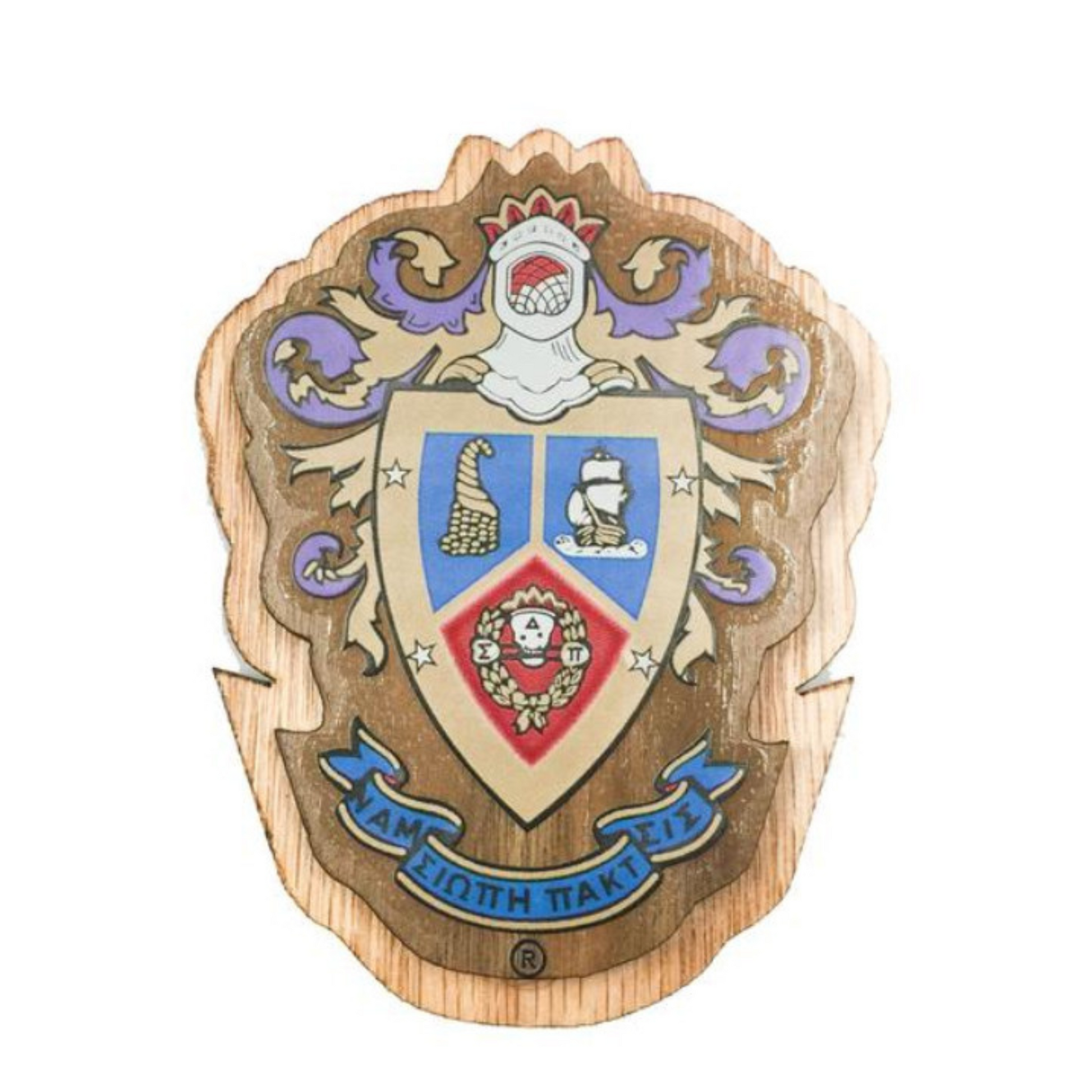 Organization raised wood crest with 3m tape adhesive backing for easy application to any paddles, doors or boxes. Holds just as good as glue when applied to a clean smooth surface.