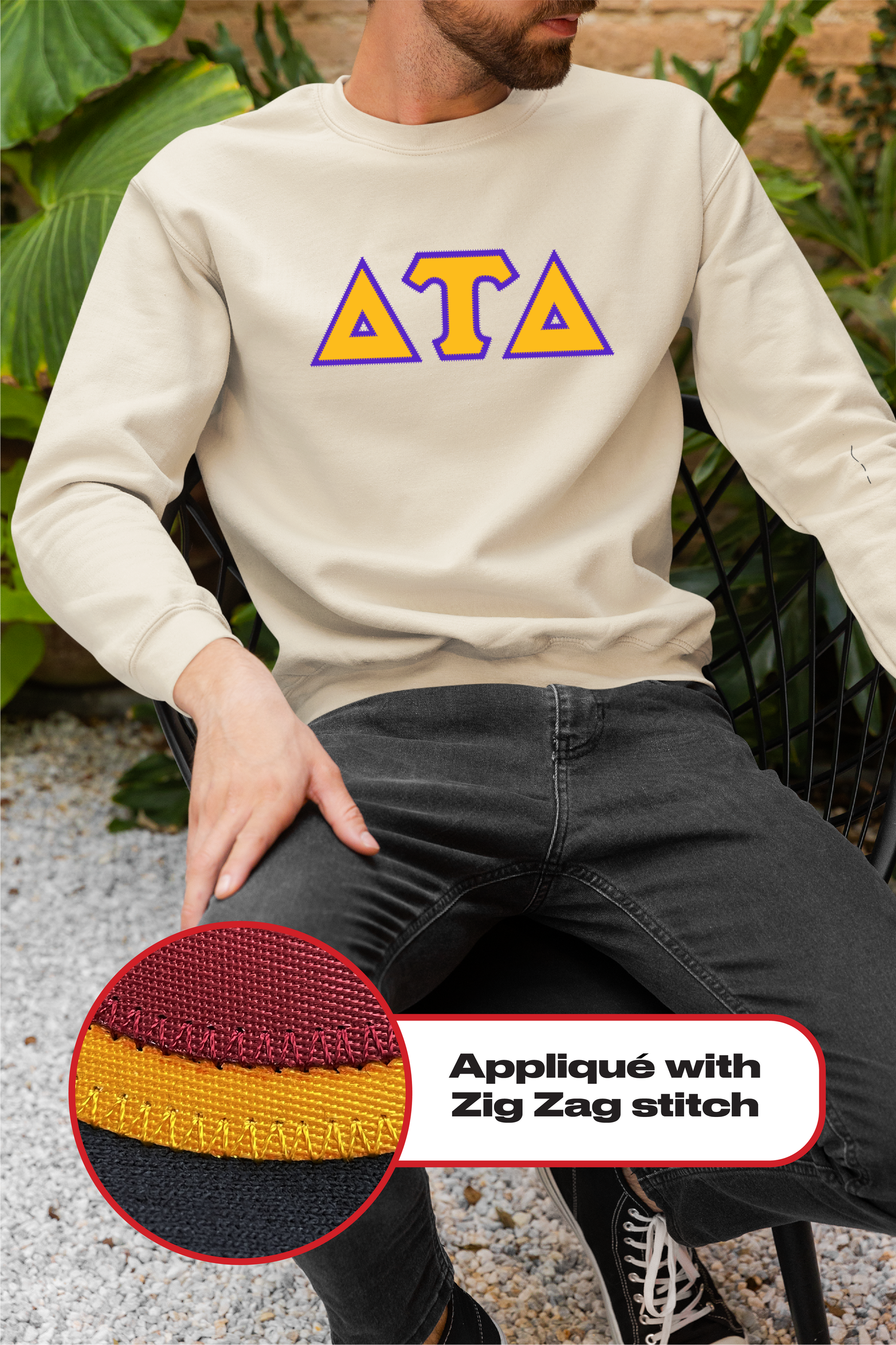 Delta Tau Delta crewneck sweatshirt letters // Delta Tau Delta zig-zag embroidered crewneck letters