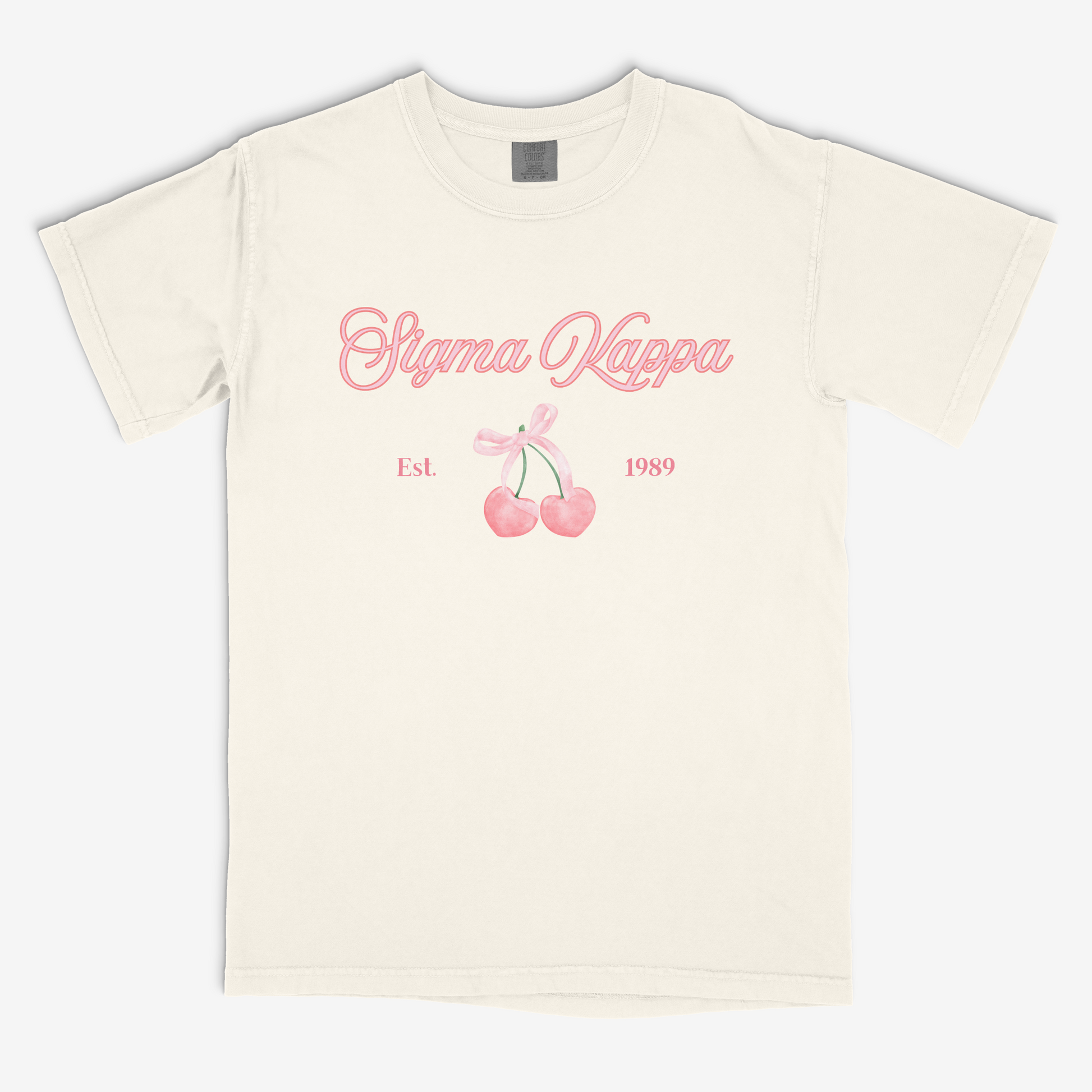 This unisex graphic tee features a pair of cherries tied with a bow and text that's customizable. Available on your choice of Comfort Colors® for that soft, vintage-washed feel, or Gildan Heavy Cotton for a classic, structured fit. Perfect for recruitment, bid day, Greek Week, philanthropy events, or casual wear.