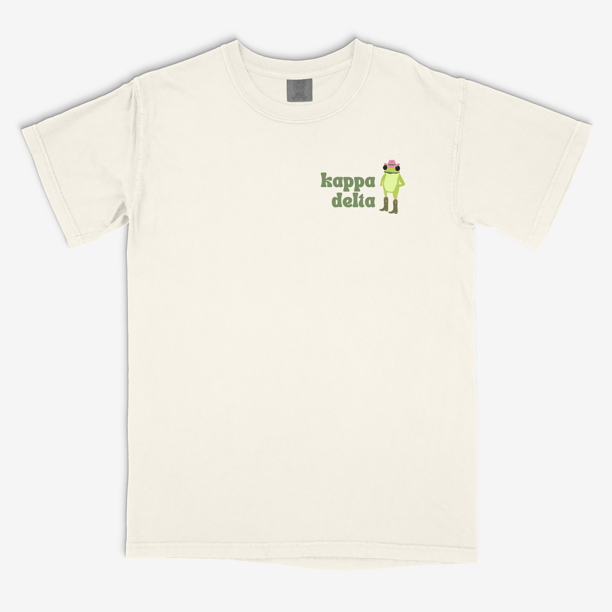 This unisex graphic tee features a frog cowboy and text that's customizable. Available on your choice of Comfort Colors® for that soft, vintage-washed feel, or Gildan Heavy Cotton for a classic, structured fit. Perfect for recruitment, bid day, Greek Week, philanthropy events, or casual wear.