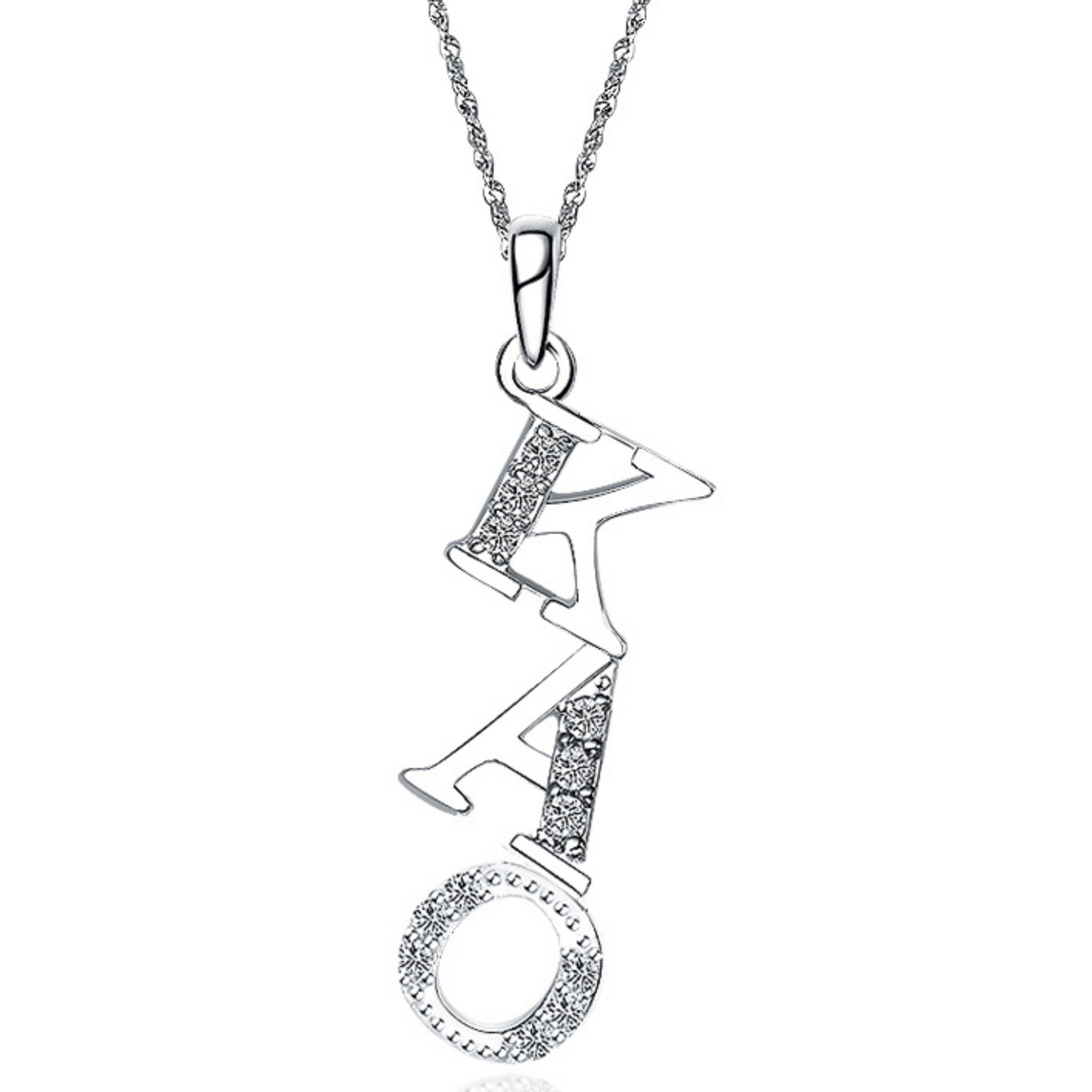 Made out of sterling silver & lab created diamonds. It’s designed and created exclusively by our company, each letter is approximately 1/4″ tall and includes a chain loop, Silver Chain sold separately.