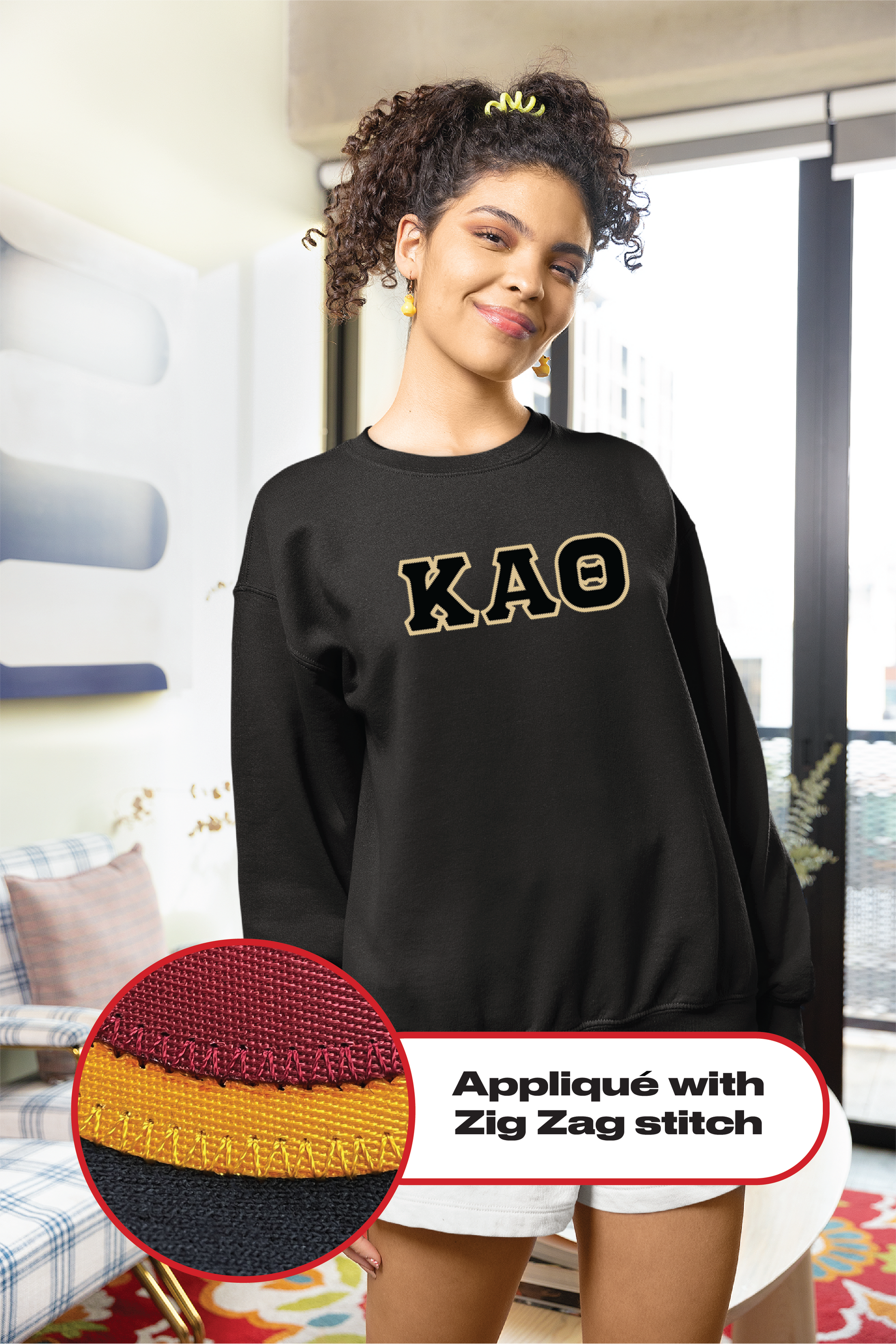 Kappa Alpha Theta crewneck sweatshirt letters // Kappa Alpha Theta zig-zag embroidered crewneck letters