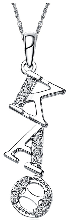 Made out of sterling silver & lab created diamonds. It’s designed and created exclusively by our company, each letter is approximately 1/4″ tall and includes a chain loop, Silver Chain sold separately.