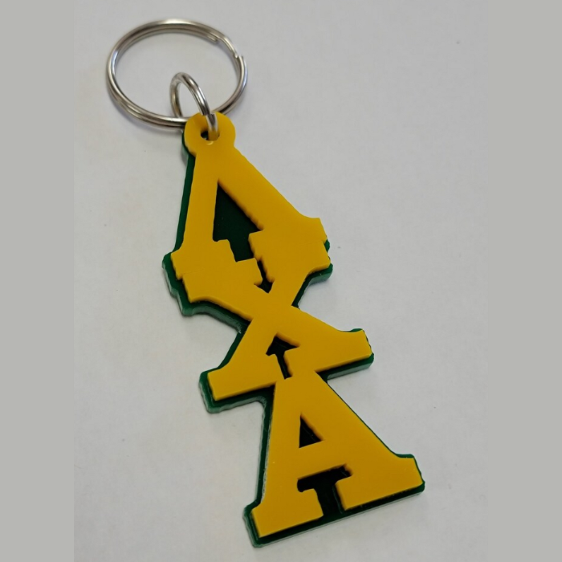 Lambda Chi Alpha Fraternity Key Chain. Laser cut Greek letters on double layer hard plastic with Fraternity colors in mind.