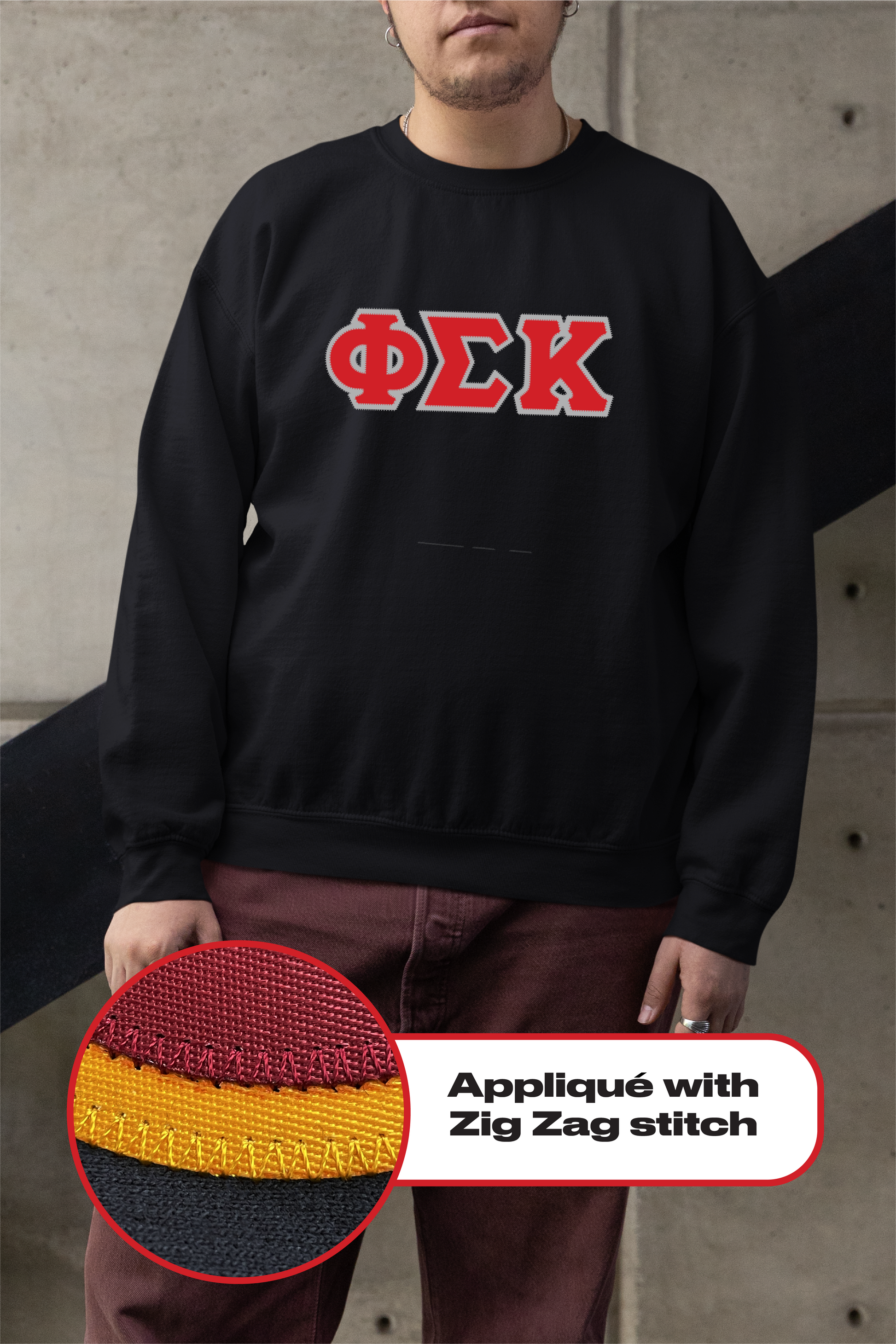 Phi Sigma Kappa crewneck sweatshirt letters // Phi Sigma Kappa zig-zag embroidered crewneck letters