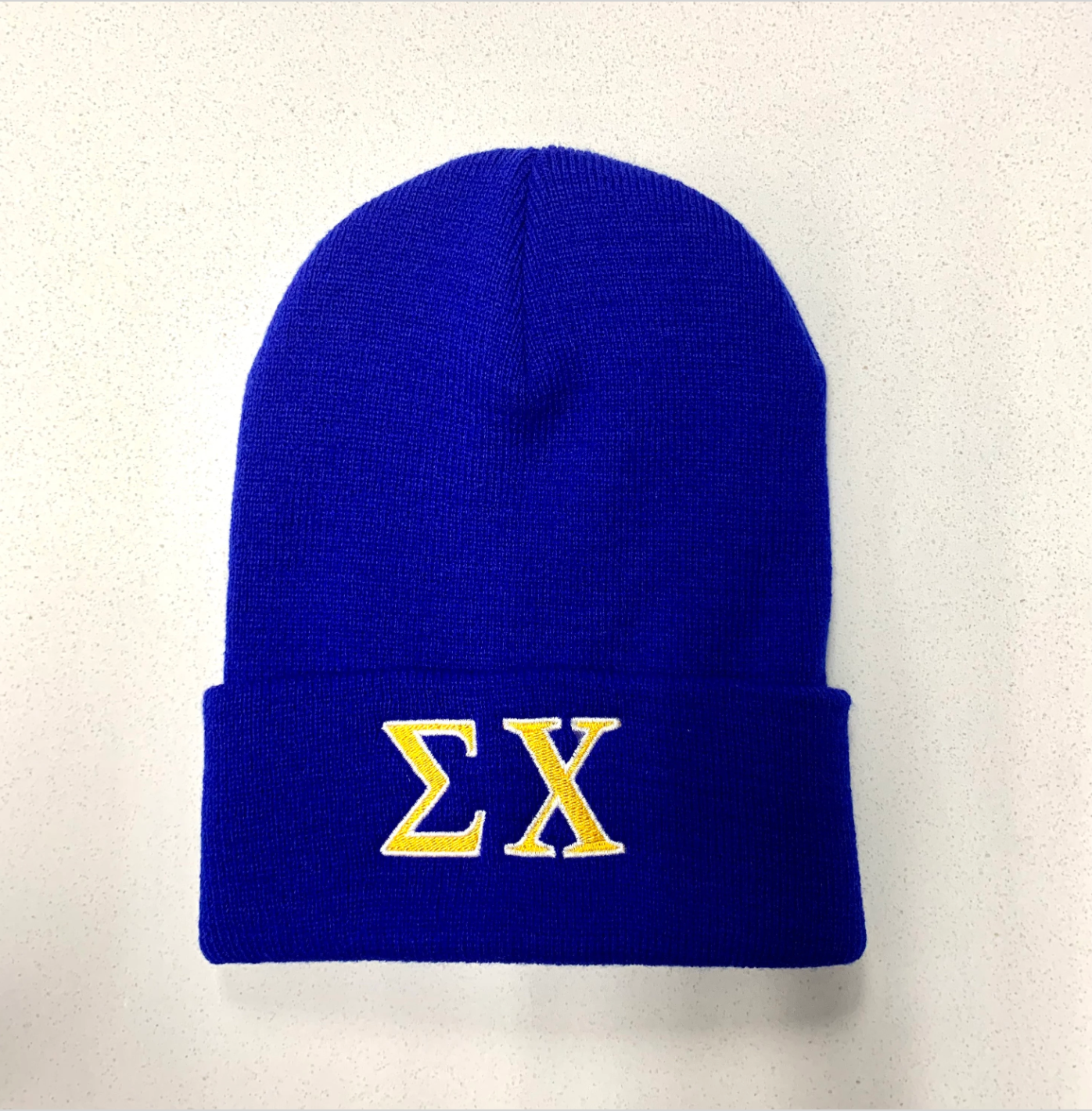 Our Fraternity and Sorority Beanies are crafted from 100% spun acrylic knit, offering a comfortable fit for everyone. Each beanie features embroidered Greek letters with a dual-color border, as shown.