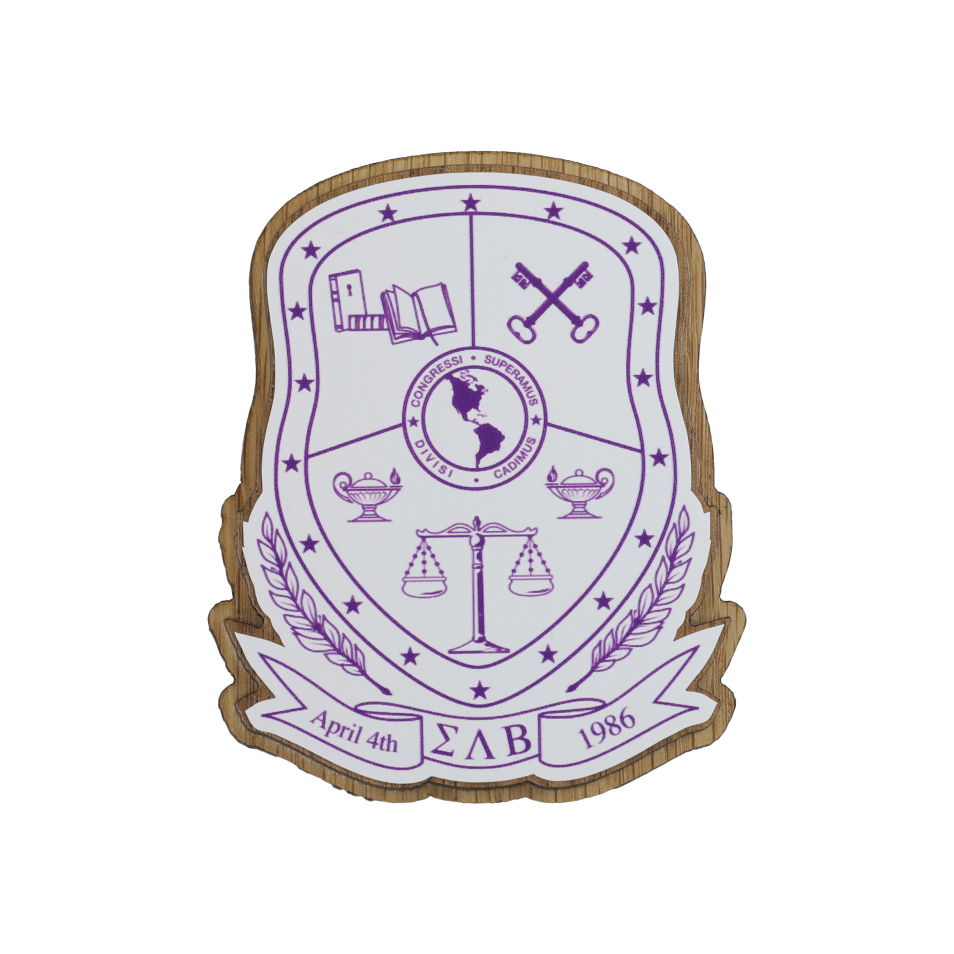 Organization raised wood crest with 3m tape adhesive backing for easy application to any paddles, doors or boxes. Holds just as good as glue when applied to a clean smooth surface.