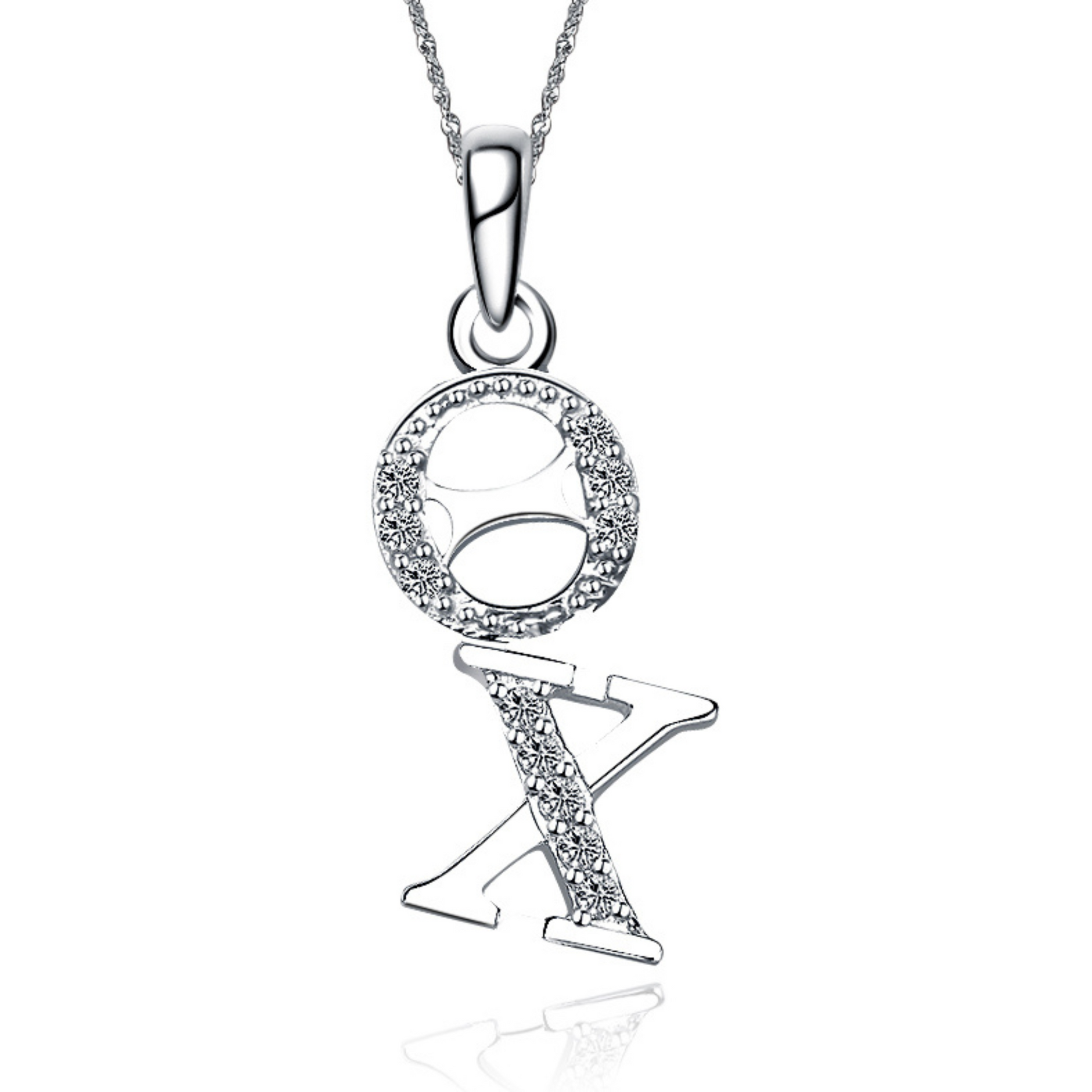 Made out of sterling silver & lab created diamonds. It’s designed and created exclusively by our company, each letter is approximately 1/4″ tall and includes a chain loop, Silver Chain sold separately.