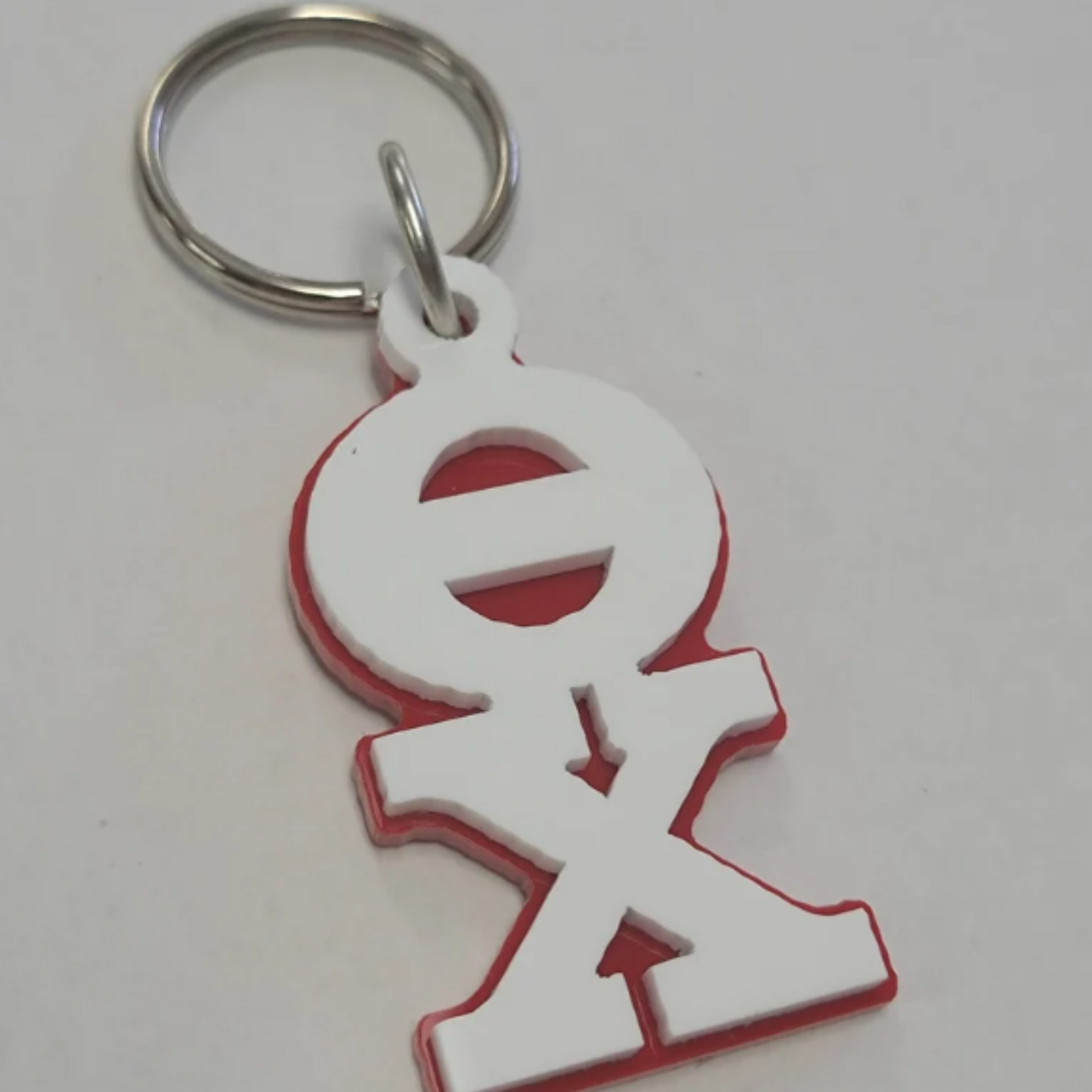 Theta Chi Fraternity Key Chain. Laser cut Greek letters on double layer hard plastic with Fraternity colors in mind.